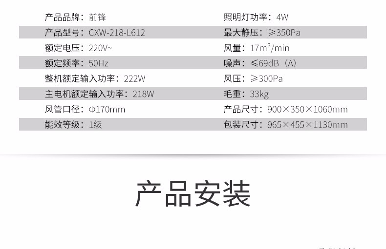 前鋒平板雙吸煙機L612