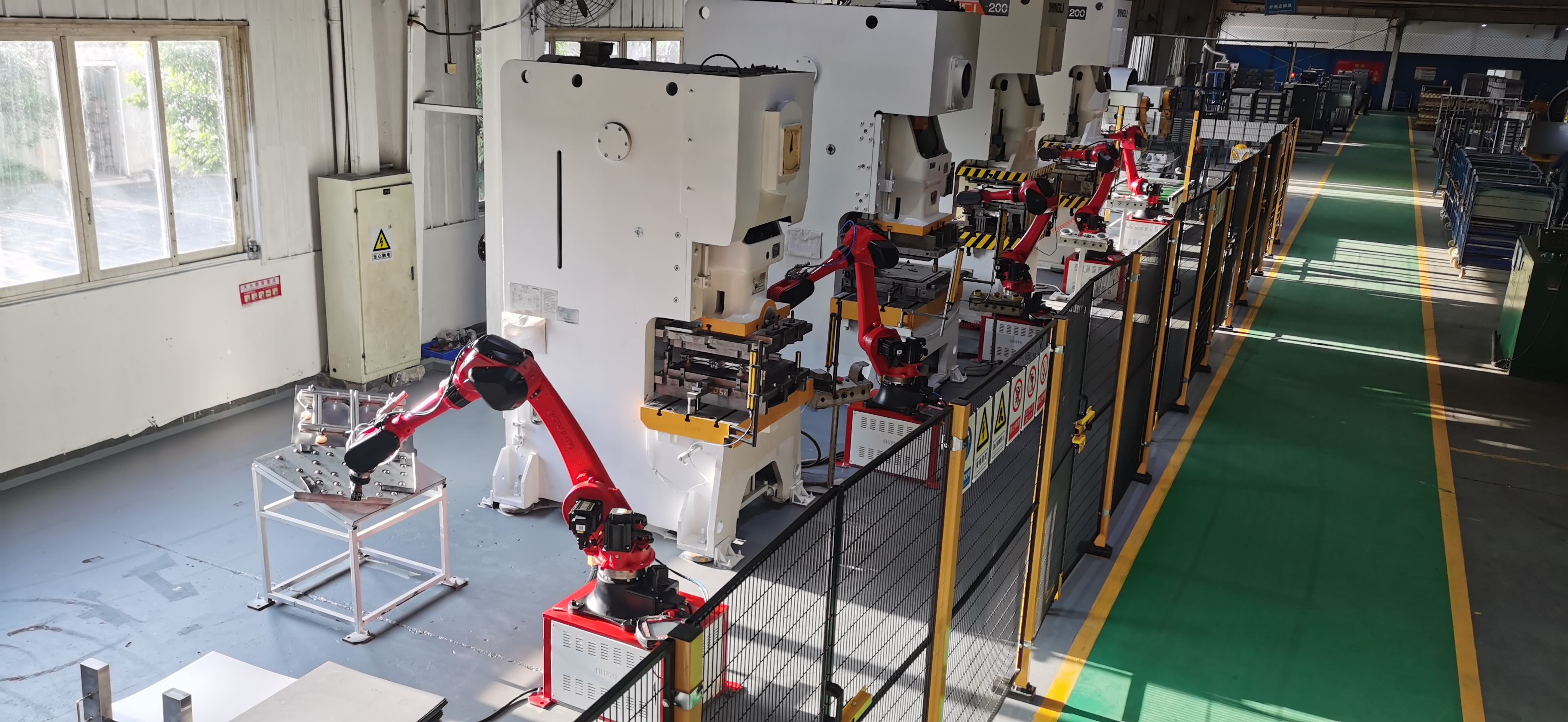 前鋒全自動沖壓線,實(shí)現(xiàn)無人化操作精準(zhǔn)控制,主要用于熱水器下外殼零件生產(chǎn),能實(shí)現(xiàn):